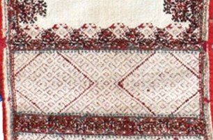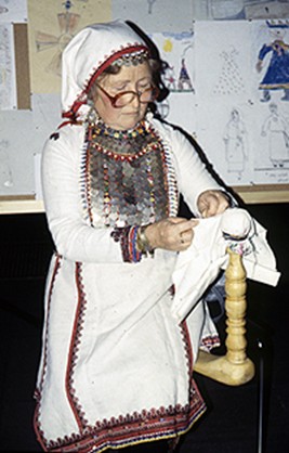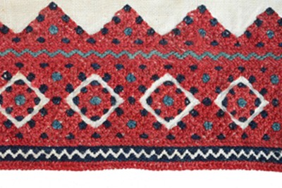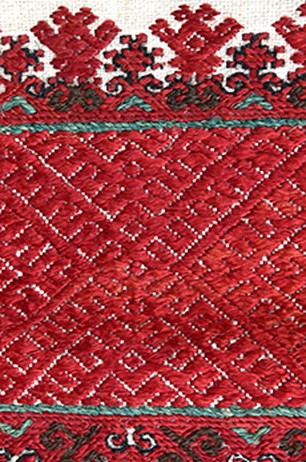 MORDVALAINEN kirjonta on puvun osa. Sen pohjakangas on hamppua ja tiivis kirjonta on tehty karkealla villalangalla (vuohi?). Mordvalaisilla oli pistokirjontatekniikoita, jotka poikkeavat muiden suomensukuisten kansojen käyttämistä kirjontatavoista ja joille meillä ei ole nimeä. Ne ovat yleensä hyvin tiiviitä ja paksuja kuten tämäkin esimerkki osoittaa.Tämä mordvalaiskirjonta löytyi Lontoosta antiikkimarkkinoilta 1990-luvulla. Kun näin sen, sydämeni hypähti kurkkuun, sillä tajusin sen harvinaisuusarvon. Myyjä oli määritellyt tekstiilin olevan Transsilvaniasta, mutta tiesin heti, että näin asia ei ole. Vaikka myyjä oli selvästi asiantunteva, hänen tietonsa suomensukuisten kansojen tekstiileistä oli heikko. Vanhojen tekstiilien ostossa päteekin sama asia kuin vanhan taiteen ostossa. On hyvä, että ostaja itse tuntee aiheen edes suurin piirtein.