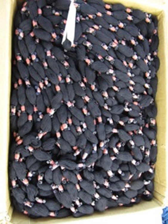 Koska Mouhijärven hameeseen tarvittava flammulanka on punaista ja värjäytyvät kohdat värjätään sinisiksi, täytyy saman sävyn saamiseksi sinisiin raitoihin tulevat langat myös värjätä punaisesta langasta. Niinpä värjättäväksi lähetetään sidotut flammuvyyhdit ja osa punaisista langoista.